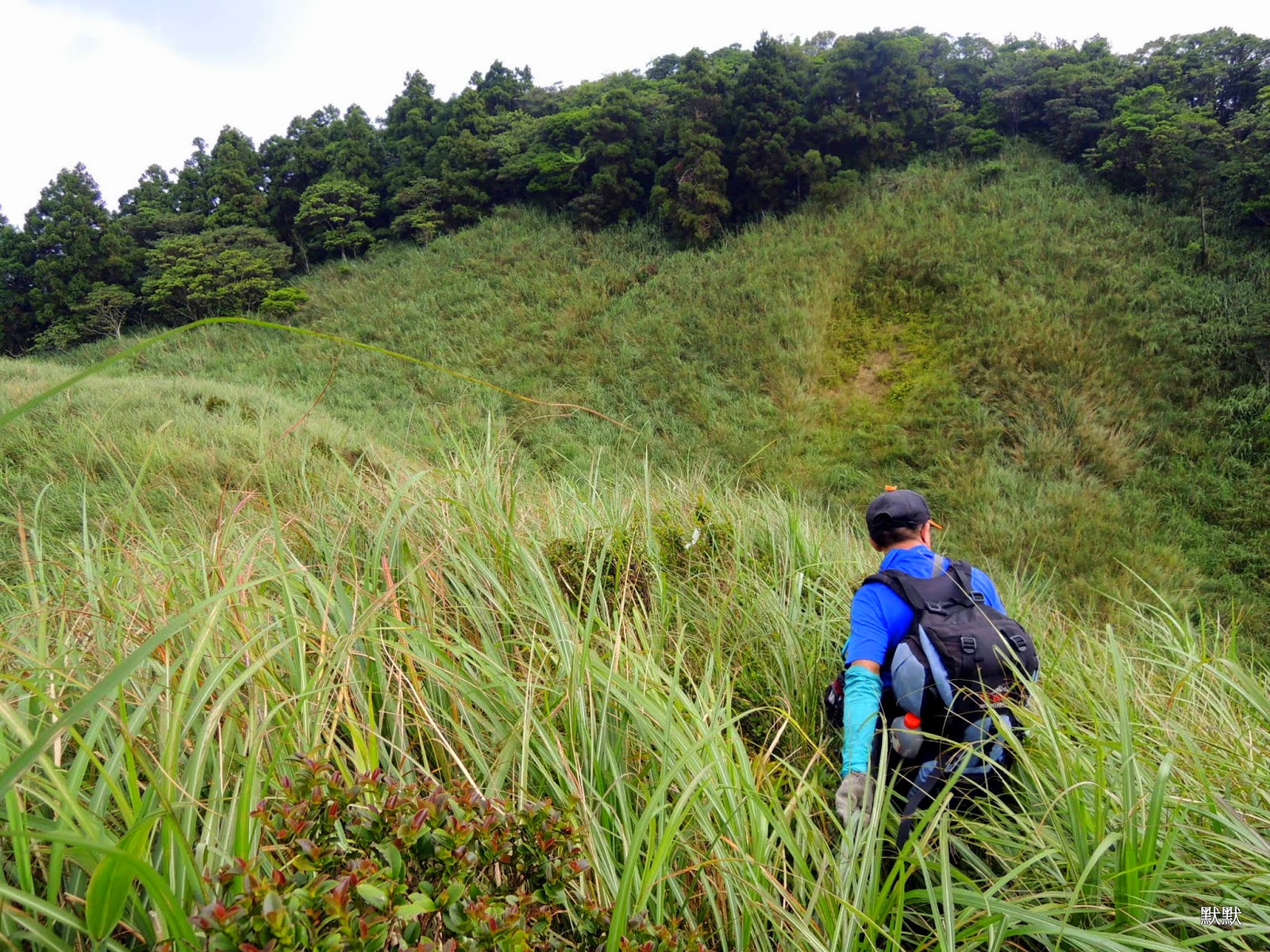 此稜路況較差,棘刺較多,喬治走前面,因為沒有帶砍刀只能以登山杖撥除障礙!