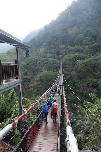 今日走山海圳的第三段「原鄉之路-茶山、新美段」,我們從上往下走,一早從嘉義出發直驅達娜伊谷自然生態公園,由福美吊橋開始行程,過吊橋接嘉129線11.6K,走到大埔橋36K,中間順遊香樟林步道、水火同源,全程超過25K。